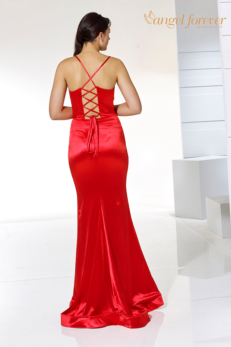 This decadent fishtail ballgown in a satin fabric with flattering ruching, featuring a sweetheart neckline, leg split and straps that fall to a tie back. A style that will show off your sexy curves and is perfect for any event.
